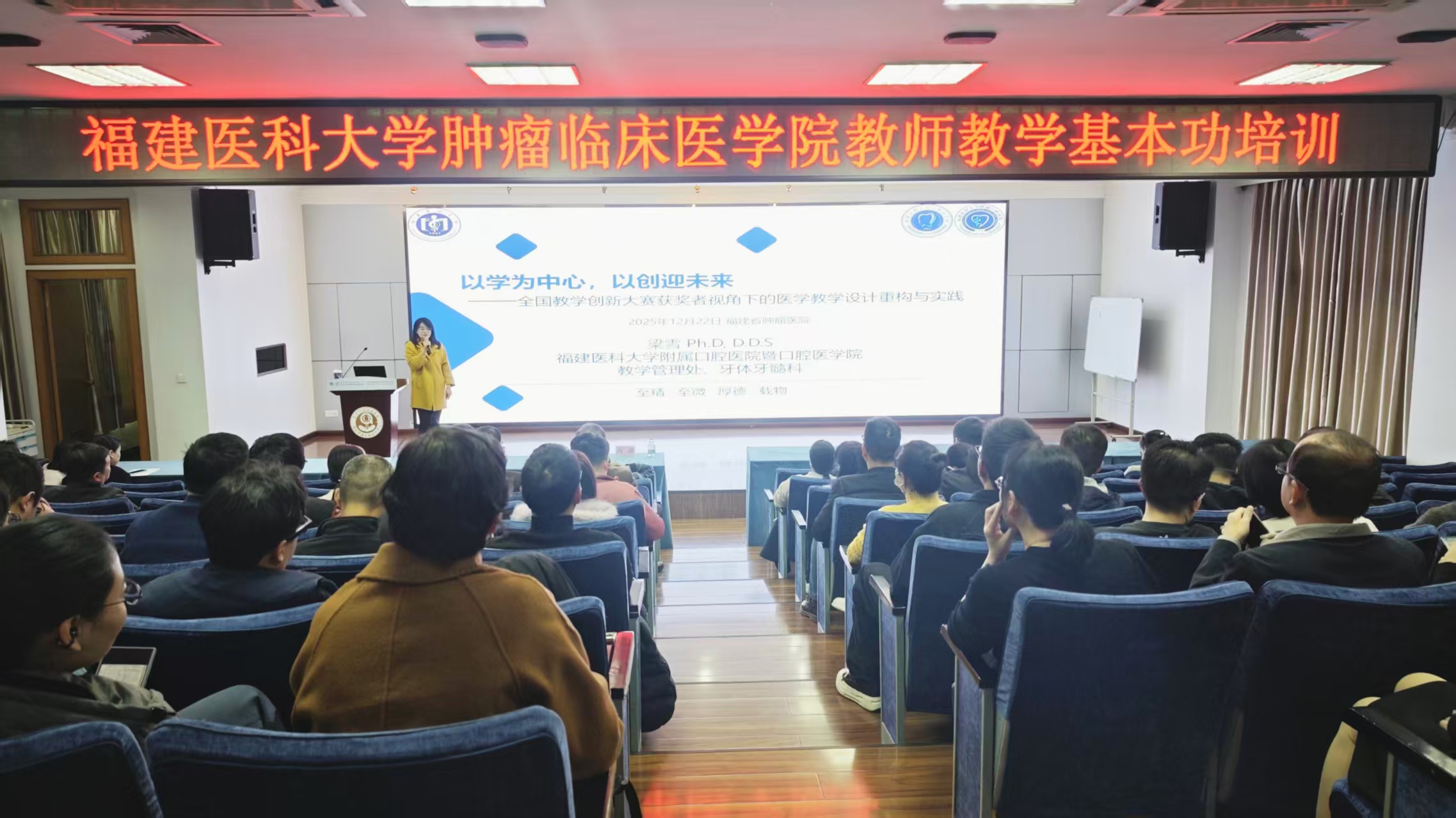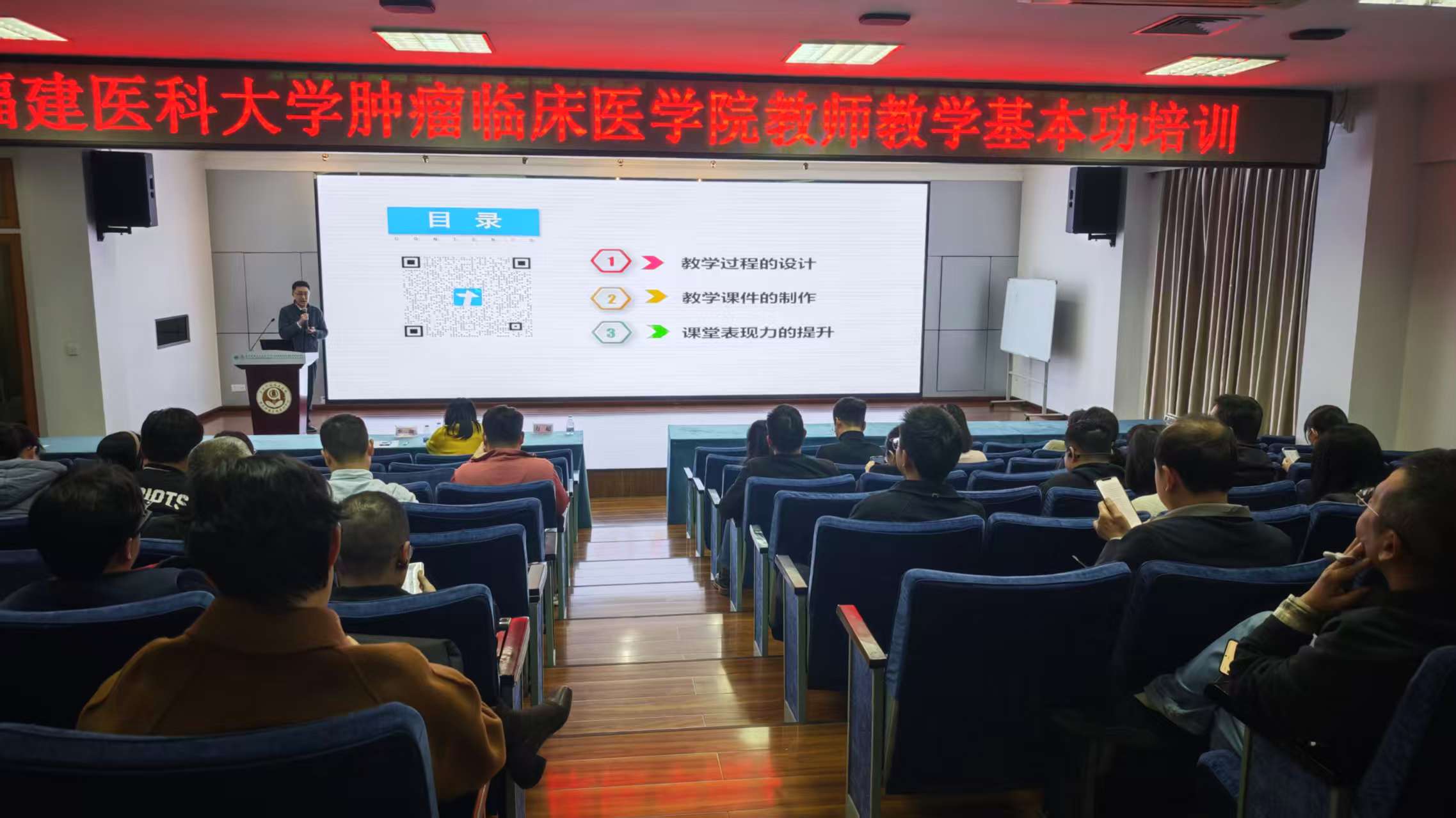 为提升青年教师教学能力,促进教学经验交流,学院于2025年12月22日下午在科研楼11楼学术厅举办“教师教学基本功培训”活动。各教研室青年教师约100余人积极参训,共同学习教学理念与方法。