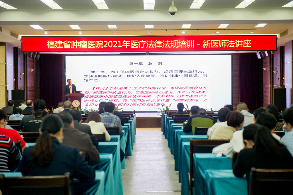 为增强我院医师队伍的法律意识和法制观念,宣传学习《中华人民共和国医师法》,进一步规范医师执业行为,加强医师队伍建设,保障患者安全,11月3日,我院在影像楼6楼会议室举办2021年医疗法律法规培训,邀请我院法律顾问杨春治律师作新《医师法》专题讲座,孙阳副院长、医务科王洋郁科长及临床医生、医技科室主任近200人参加,医务科黄峰副科长主持会议。
