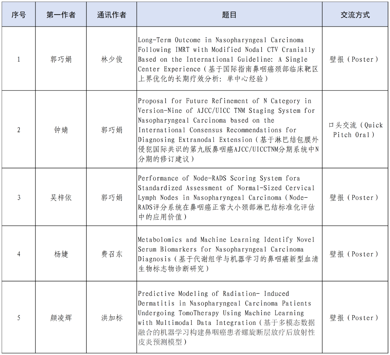 近日,我院鼻咽癌诊治中心5项研究成果成功入选2025年美国放射肿瘤学会(ASTRO)年会,标志着我院在鼻咽癌领域的科研实力获得国际同行的高度认可。