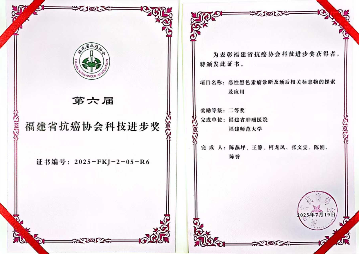 我院黑色素瘤研究团队两项成果获第六届福建省抗癌协会科技进步奖
