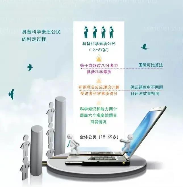 具备科学素质公民的判定标准历次调查相一致,即测算受访者回答科学素质测试题目的得分,将超过70分者判定为具备科学素质公民,通过加权计算得出目标群体具备科学素质公民的比例值。