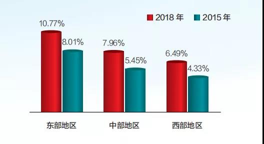 东部地区公民科学素质领先发展、率先超过了10%,东部地区、中部地区和西部地区的公民科学素质水平都有大幅提升。