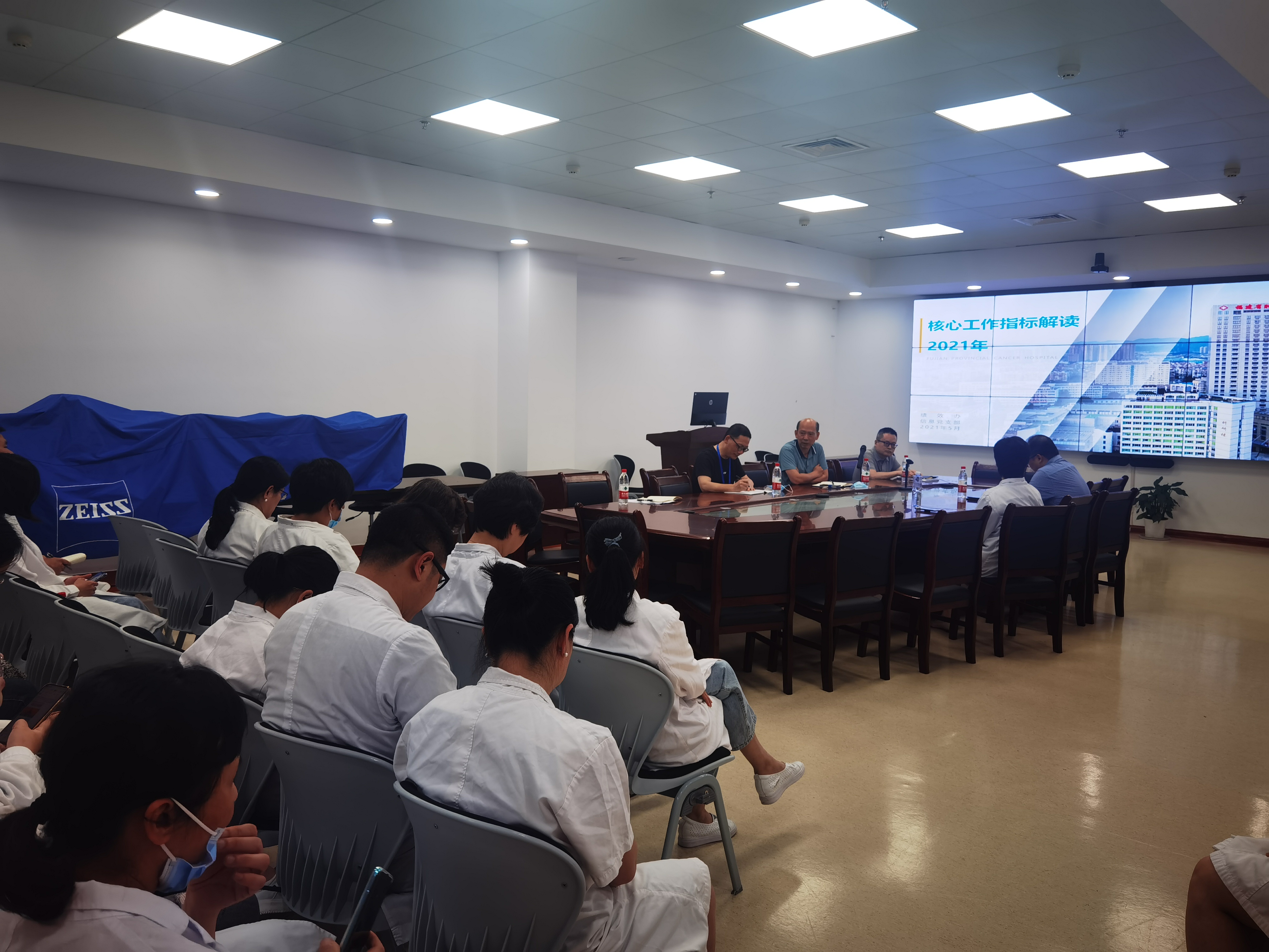 绩效办向临床医护人员宣讲2021年度核心工作指标。针对不同专科的考核目标,详细解读了30个核心指标,细致分析指标内涵,并对临床医护重点关注的指标做进一步的深入解读,加深临床医技科室对指标的理解,为提升我院各项核心指标质量起到了积极的促进作用。