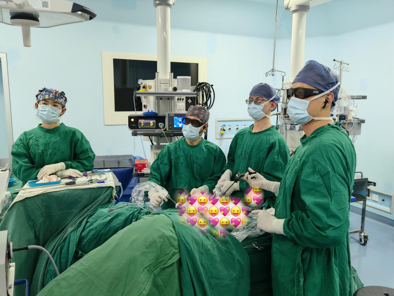 虽然已有过多例成功案例在先,但面对此高难度手术,杨春康教授始终严阵以待,在总结前期手术经验基础上,与麻醉科、手术室护理团队等做好充分的术前准备,在团队成员的密切配合下,历时5小时余,顺利完整切除肿瘤,成功完成手术,术中出血近约300ml。