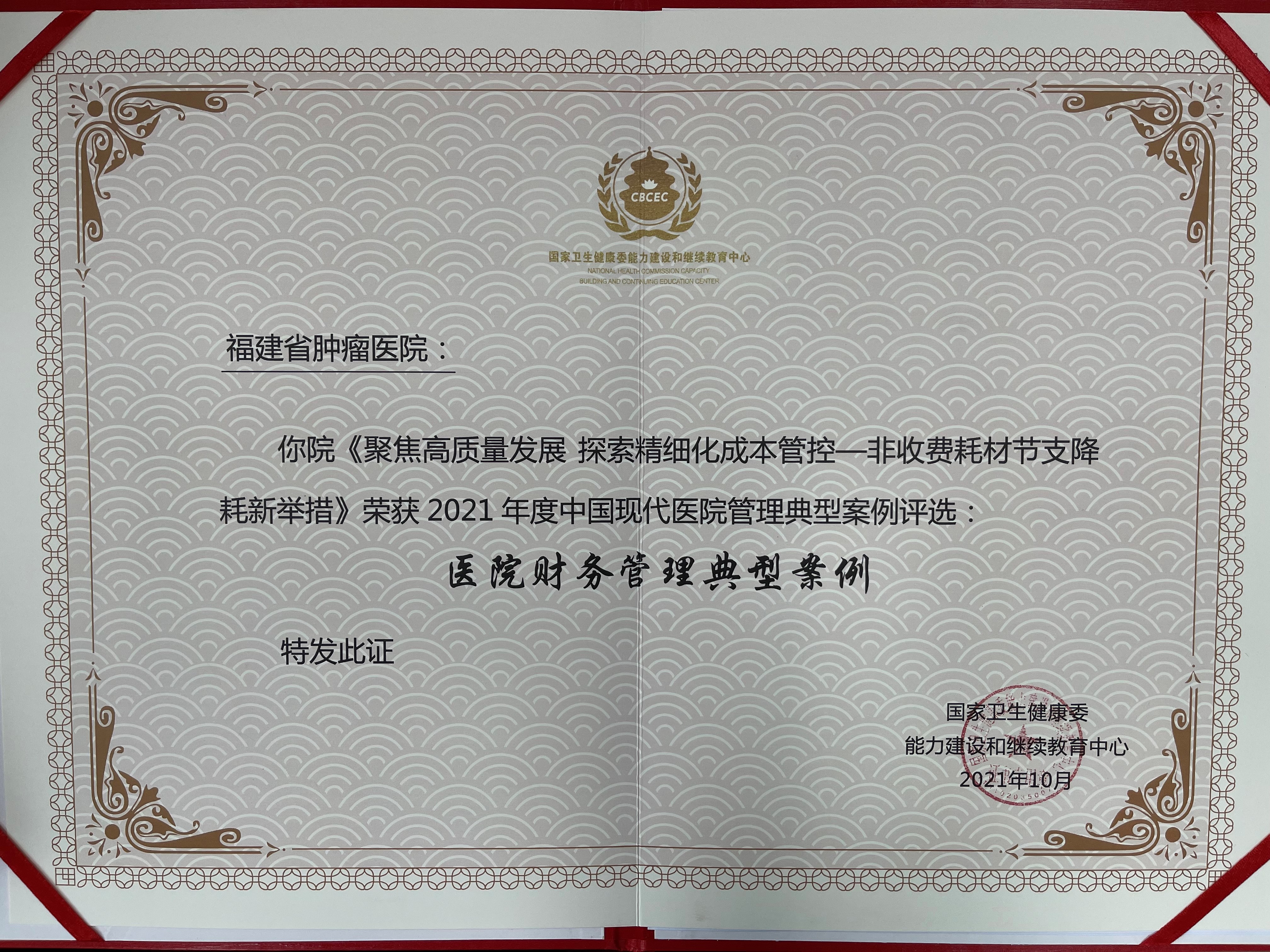 勇创佳绩!福建省肿瘤医院两项管理案例荣膺2021年度中国现代医院管理典型案例