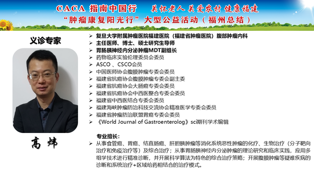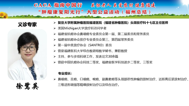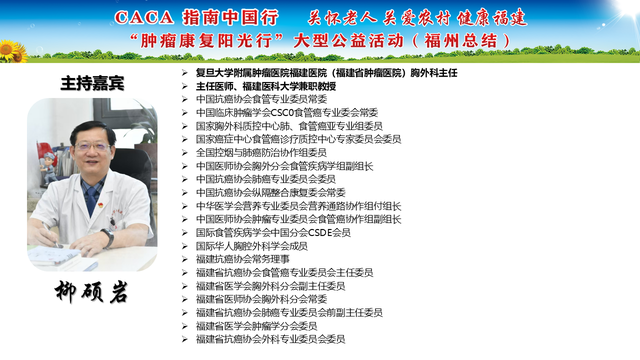 《CACA指南》立足中国人群、纳入中国研究、展现中国成果、兼顾医疗可及性、辐射基层、注重“防-筛-诊-治-康”全程规范管理,兼具中国特点和国际视野,是我国肿瘤学界最权威的指南,也是世界肿瘤领域的集大成者。为推动全国癌症防控事业发展的肿瘤指南规范体系,帮助广大医务工作者不断学习新理念、新技术、新疗法,掌握应用新药物,更好地服务患者;更能够帮助各医疗单位、医学院校、科研机构积极引入最新诊治理念、诊治技术,努力培养与临床应用接轨的高素质人才,中国抗癌协会联合相关单位在全国范围内,组织开展“CACA指南中国行”系列活动,掀起全国“学指南、用指南、遵规范”的热潮,助力并推动健康中国行动(2019—2030年)癌症防治目标的实现。“肿瘤康复阳光行”系列公益活动是省抗癌协会面向全省基层,主要聚焦服务老年和农村肿瘤患者,持续开展以“质量提升,规范先行”为主题的全省义诊及巡讲培训等科技志愿服务活动,活动旨在倡导积极预防癌症,推进早筛查、早诊断,降低癌症发病率和死亡率。