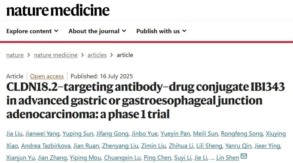 该研究阐述了创新型抗紧密连接蛋白 18.2(CLDN18.2) 抗体-依喜替康偶联物(ADC)IBI343治疗晚期胃或胃食管交界处腺癌(G/GEJ AC) I期临床研究数据,在全国共纳入116例G/GEJ AC受试者,我院内科杨建伟团队自2023年3月以来贡献16例病例数。此次数据发表标志着中国研究者在抗肿瘤新药研发的取得了又一重大成就。基于该数据,IBI343已于2024年启动国际多中心临床III期研究(G-HOPE-001,NCT06238843),目前在我院肝胆胰肿瘤内科开展,期待继续在III期研究中做出突出贡献,为晚期G/GEJ AC治疗带来高效低毒的新选择。