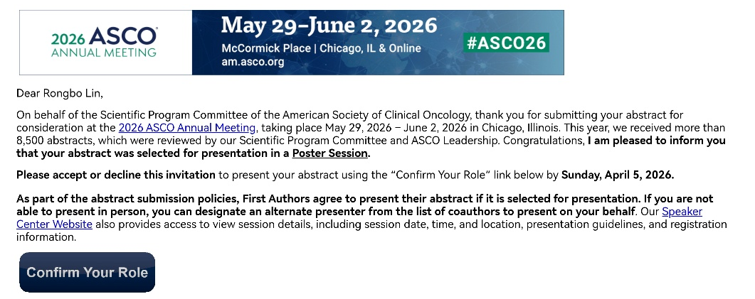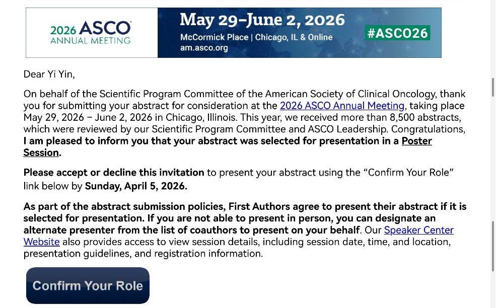 此次4项研究同时入选ASCO年会,体现了我院研究团队在消化道肿瘤精准治疗领域的持续深耕与创新突破,并获得国际认可。未来,团队将继续以临床需求为导向,深化高质量临床研究,为肿瘤患者带来更多获益。