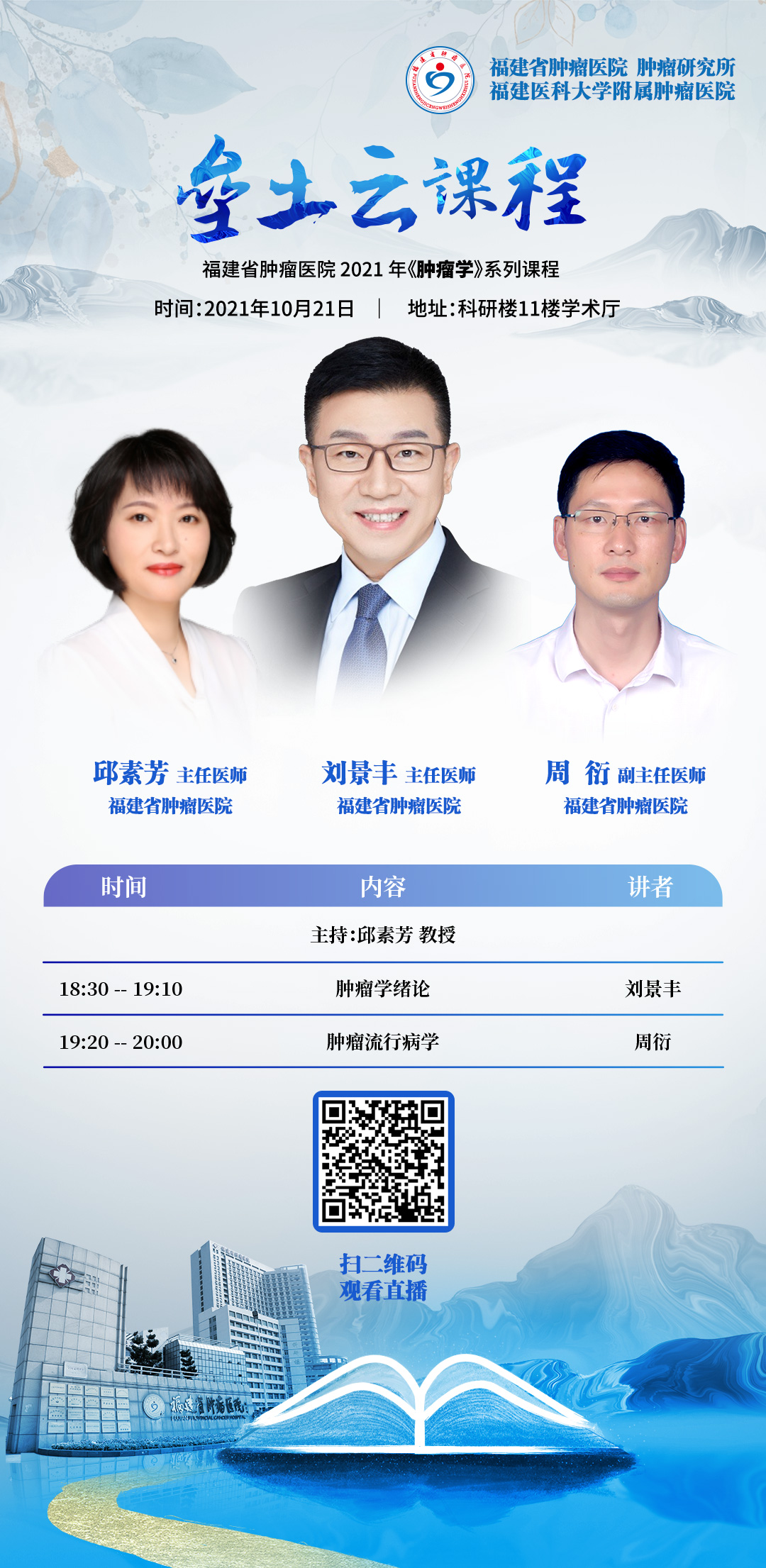 根据大家对当前肿瘤学方面普遍存在和关心的问题,从第97期开始,垒土沙龙活动将以线上线下结合的方式,开展《肿瘤学》垒土云课程。我们邀请了我院各学科的资深专家教授担任主讲人,内容涵盖了肿瘤的流行病学、病因、发病机制、诊断、鉴别诊断及内、外、放射治疗等多方位,多层次内容。从基础知识到科研前沿,从典型病例到临床经验,原汁原味的精彩打包而来,不容错过。